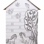 Le pareti bianche con contorni neri di cavalli invitano a colorare con matite o pennarelli. I bambini creano un aspetto unico della casetta e sviluppano la fantasia.