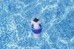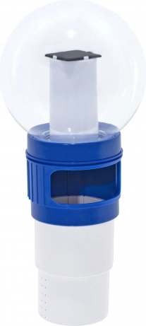 Soluzione 2 in 1 intelligente per ogni vasca da giardino: il dosatore galleggiante per prodotti chimici Bestway garantisce un rilascio uniforme delle pastiglie di cloro o bromo e, al tempo stesso, illumina la superficie dell’acqua la sera con una piacevole luce LED. Il pannello solare ricarica la luce durante il giorno, quindi non servono cavi né batterie sostituibili.