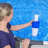 Basta inserire le pastiglie e lasciare che il dosatore galleggi liberamente. Per sicurezza, rimuoverlo dalla piscina durante il bagno.