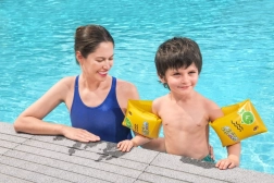 I braccioli BESTWAY Swim Safe ABC sono un ottimo aiuto per i bambini dai 3 ai 6 anni nei primi approcci all’acqua. La struttura a doppia camera garantisce maggiore stabilità e una galleggiabilità più sicura, mentre il PVC resistente e morbido non limita i movimenti.
