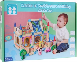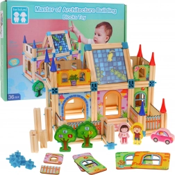 Questo set variopinto offre ai bambini ore di divertimento creativo. Nella confezione trovi travetti in legno piccoli e grandi, pezzi colorati stampati (quadrati, rettangoli, triangoli) e elementi tematici come alberi, personaggi e una macchinina. Grazie alla guida illustrata inclusa, i bambini iniziano facilmente a costruire le loro prime casette e progressivamente provano strutture più complesse.