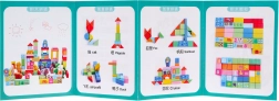 | - 100 blocchi di legno di diversi colori e forme, - manuale illustrato. | |