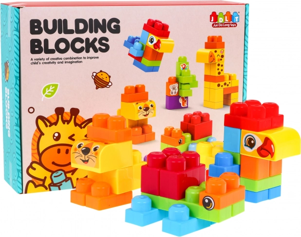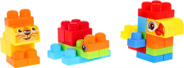 Colorato set di costruzioni per bambini dai 3 anni composto da 68 pezzi, con cui i piccoli assemblano adorabili animali dello zoo – leone, tigre, giraffa, tartaruga, pappagallo, elefante, farfalla e struzzo. La costruzione sviluppa creatività, motricità fine e coordinazione occhio–mano. Inclusi adesivi e manuale per iniziare con facilità.
