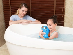 Grazie alla struttura gonfiabile il dinosauro galleggia in sicurezza sulla superficie e trasforma il bagno in un gioco divertente.