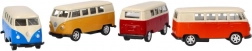 Il Volkswagen T1 MicroBus è un modello dettagliatamente lavorato che entusiasmerà ogni amante del design retrò. Questo modello in metallo con ruote in gomma è ideale sia per scopi collezionistici sia per il divertimento dei bambini. Grazie al meccanismo a volano, basta tirare il veicolo indietro e si muove da solo in avanti.