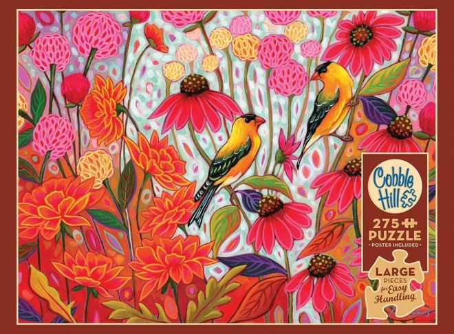 Immergiti nel mondo del puzzle colorato con il motivo dei cardellini in primavera. Questo puzzle contiene 275 pezzi extra grandi progettati per una migliore manipolazione e divertimento per tutte le generazioni.