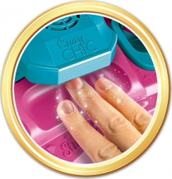 Trasformate la manicure in un gioco con lo studio per unghie CRAZY CHIC – una moderna console ergonomica per piccole stylist. L'applicatore di glitter integrato e l'asciuga smalto garantiscono un look di tendenza in linea con le tendenze del momento. Nella confezione trovate smalti CRAZY CHIC, adesivi per unghie e polvere glitter colorata. Il giocattolo sviluppa la creatività e la motricità fine ed è stato progettato e sviluppato in Italia.