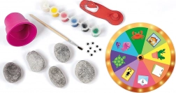 Questo set creativo offre tutto ciò di cui i bambini hanno bisogno per realizzare pietrine colorate: dalle pietre di varie dimensioni alle tempere, fino agli occhi adesivi. Include anche una divertente ruota con sfide che suggerisce quali motivi provare e come comporre piccole composizioni di pietre.