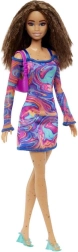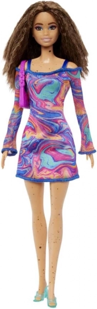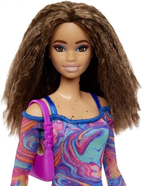 Un abito nei toni del rosa e del blu con motivo psichedelico dona alla bambola un look unico che spicca in ogni collezione.