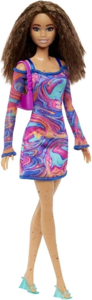 Le Barbie Fashionistas offrono una prospettiva fresca su moda, stile e personalità. Questa bambola incanta con un vortice di toni corallo, rosa e blu sull’abito dal motivo marmorizzato arcobaleno, maniche a rete e accessori di tendenza. Ideale per i bambini che amano combinare outfit e creare le proprie storie.