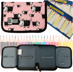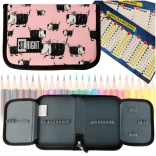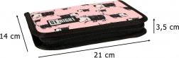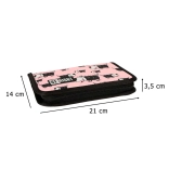 Pratico astuccio scolastico con due alette in design rosa con cani. Offre un’organizzazione chiara del materiale scolastico, è chiudibile con cerniera e ha tirazip ergonomico. All’interno trovi divisori e passanti elastici per pennarelli, matite e righello; inclusi anche tabella delle tabelline e orario delle lezioni.