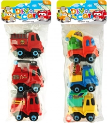Set di auto a vite per bambini, che include tre modelli diversi di lunghezza 10 cm. Ideale per piccoli costruttori e vigili del fuoco.