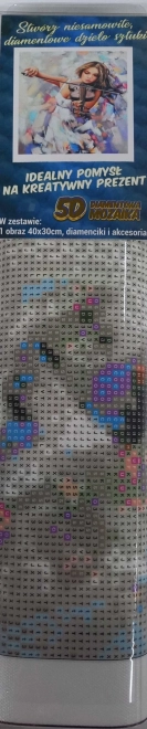 Procedimento per la pittura con diamanti: La tela è coperta di colla e protetta da una pellicola trasparente. Rimuovere la pellicola gradualmente in parti, per mantenere pulito lo strato adesivo. Le pietruzze corrispondono ai segni sulla tela in base alla leggenda allegata e sono suddivise per colori.