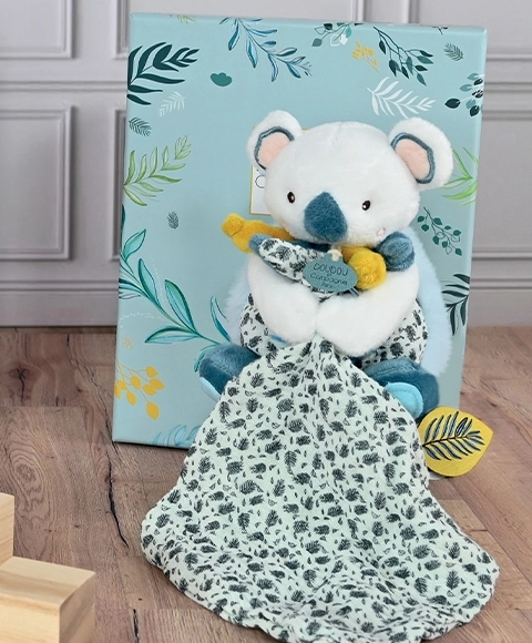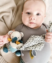 Questo set è ideale per le coccole quotidiane, per la nanna e per momenti di tranquillità. La koala Yoca diventerà presto la compagna amata del tuo bebè.