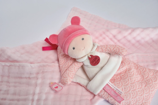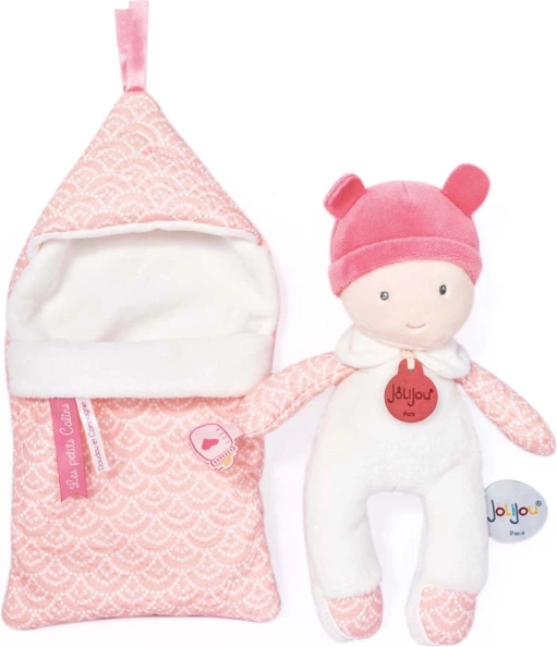 Adorabile bambola peluche in una bellissima coperta rosa è il giocattolo perfetto per i bambini fin dalla nascita. Grazie alla sua texture morbida, questa bambola offre ai bambini una sensazione di comfort e sicurezza, rendendola un compagno ideale per dormire o giocare.