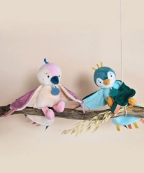 Questo adorabile giocattolo di peluche è non solo un amico accogliente per il tuo neonato, ma sostiene anche il suo sviluppo sensoriale e della motricità fine. Le sue ali, coda e testa sono adornate con nastri colorati che i bambini possono mordicchiare, sviluppando così la loro sensibilità tattile.