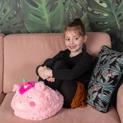 Un elegante unicorno rosa con corno colorato conquista al primo sguardo e rende più accogliente ogni soggiorno o cameretta.