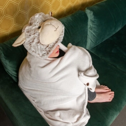 Questa adorabile coperta calda con cappuccio trasforma ogni momento di coccole in un’avventura. Il cappuccio peloso con orecchiette e viso da pecorella e le pratiche tasche a forma di zampa stimolano l’immaginazione dei bambini e allo stesso tempo tengono ben al caldo le manine. Il pile leggero e traspirante è piacevole al tatto e scalda in modo eccellente.