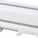 Le dimensioni della vaschetta sono 78 x 49 x 21 cm e quelle della vaschetta piegata sono 78 x 49 x 10 cm.