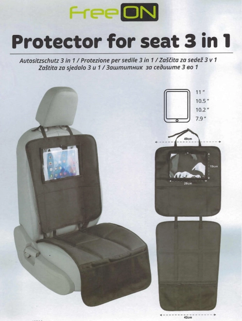 Il seggiolino con protezione e organizer 3 in 1 è progettato per offrire protezione completa e praticità. Protegge il sedile dell'auto da impronte e sporcizia grazie a un materiale resistente, facile da pulire.