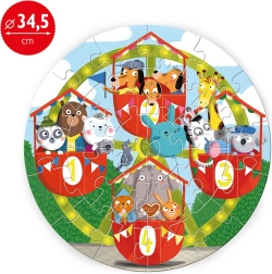 Questo bellissimo puzzle rotondo con il tema degli animali sulla ruota panoramica offre ai bambini un apprendimento divertente attraverso il gioco. Grazie al numero gestibile di tessere e al design accattivante, è adatto ai primi successi di composizione e ai momenti condivisi con i genitori.