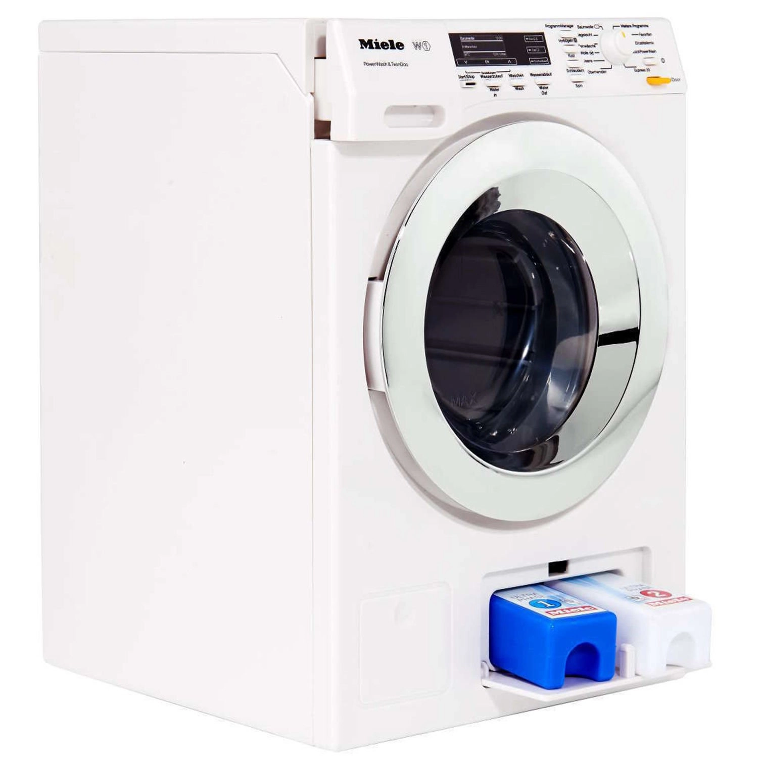 Realistica lavatrice giocattolo MIELE del marchio KLEIN offre ai bambini un divertimento autentico imitando gli adulti. Dispone di cestello rotante, 4 cicli di lavaggio, indicazione LED e possibilità di lavare con acqua o senza acqua. Grazie agli effetti sonori e al cassetto funzionante per l’acqua, il gioco è ancora più credibile e sicuro per bambini dai 3 anni.