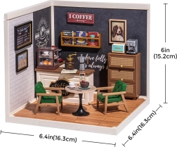 Entra nel mondo della caffetteria in miniatura, dove ogni dettaglio è una gioia per gli occhi – dalle sedie e dal tavolino fino alla macchina del caffè e alle decorazioni da parete. Il set arriva smontato e, una volta assemblato, crea una scena d’effetto che impreziosisce scaffali, tavoli e vetrine. L’illuminazione LED dona al modello un’atmosfera unica.