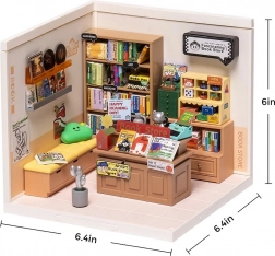 La mini libreria di Robotime è un kit ben progettato che ti trascina nel mondo dei piccoli dettagli. Una volta assemblata, si distingue per gli scaffali realistici, il bancone con cassa e gli adorabili accessori. L'illuminazione LED integrata crea la sera un'atmosfera unica e trasforma il modello in una decorazione suggestiva.