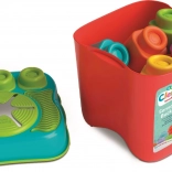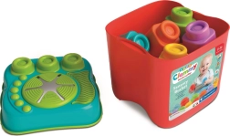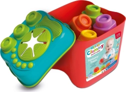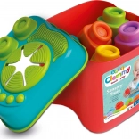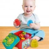 Cestino con 15 mattoncini. Il coperchio morbido con elementi sensoriali offre tanto divertimento e stimola l’esplorazione. Si apre e si chiude facilmente.