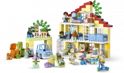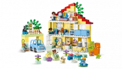 Scopri la casa di famiglia LEGO DUPLO 3 in 1, che guida i bambini attraverso la vita quotidiana, il gioco e l’apprendimento. Una casa a tre piani con cinque stanze, 7 personaggi e tanti accessori che favoriscono lo sviluppo delle abilità sociali, la fantasia e la motricità fine. Non mancano il mattoncino luminoso a forma di stella, l’orto con il raccolto e una macchinina elettrica a energia solare – ideale per bambini dai 3 anni.