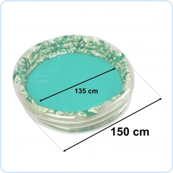 Questa bellissima piscina gonfiabile con grafica di foglie verdi diventerà una splendida decorazione per il tuo giardino e un luogo di divertimento indimenticabile per il tuo bambino. Grazie alle sue dimensioni - diametro 150 cm, diametro interno 135 cm - è abbastanza spaziosa per più bambini.