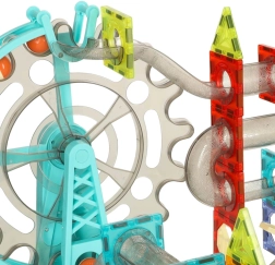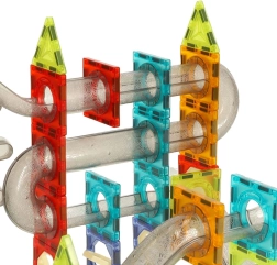 I magneti potenti mantengono salde le strutture e i tubi trasparenti permettono ai bambini di seguire ogni movimento delle biglie. Costruzione rapida, stabile e divertente.