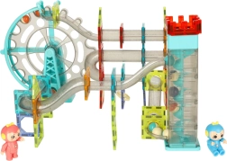 Il set è ideale per apprendere i principi di gravità, movimento e causa-effetto. I bambini possono combinare forme, sovrapporre livelli della pista ed esperimentare con la velocità delle biglie. Gli adesivi inclusi aggiungono un tocco personale alle creazioni e due personaggi stimolano il gioco di ruolo narrativo.