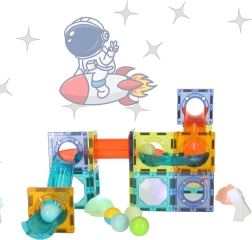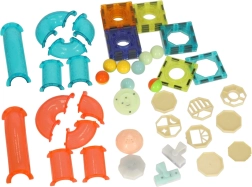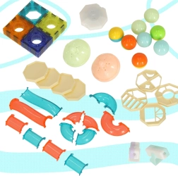 Il set offre costruzioni versatili in 2D e 3D: da forme semplici a piste complesse. I quadrati magnetici garantiscono una struttura stabile, mentre tubi e tunnel si inseriscono facilmente “a scatto”. Grazie ai componenti e alle biglie luminose, ogni discesa diventa uno spettacolo divertente e visivamente accattivante.