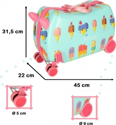 Questa valigia cabina per bambini è il compagno ideale per vacanze, gite e visite nel weekend. Il motivo giocoso del gelato cattura subito l’attenzione e la robusta struttura in plastica resiste agli spostamenti quotidiani. I bambini la adoreranno per la possibilità di sedersi sopra e riposare, i genitori apprezzeranno la pratica organizzazione e la facilità di utilizzo.