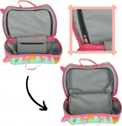 Quattro ruote rosa e manici robusti facilitano il controllo della valigia per bambini e genitori. La zip a doppio senso accelera la preparazione e il disimballaggio.
