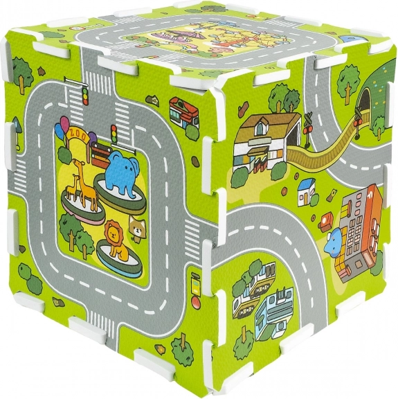 Il tappeto favorisce la percezione spaziale e offre molte possibilità di gioco: unite tutte le tessere in un’unica area di gioco oppure costruite oggetti 3D come un cubo, una torre o piccoli “ripiani”. Grazie ai bordi collegabili l’assemblaggio è semplice e divertente, e il gioco sviluppa naturalmente concentrazione e creatività.