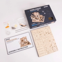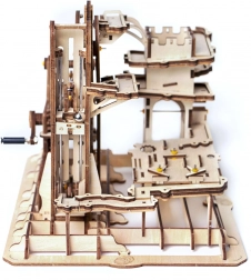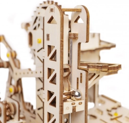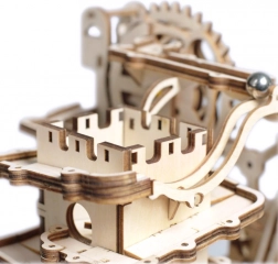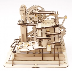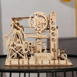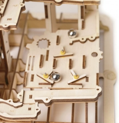 Il modello include un distributore a torre, rampe a spirale, elevatore a gru e a ruota, uno scivolo corto e deviatori sapientemente posizionati che cambiano la traiettoria delle biglie. Il livello di difficoltà è 4/5; l’assemblaggio richiede circa 6–7 ore. Una volta finito, basta girare la manovella e lasciarsi conquistare da uno spettacolo dinamico che illustra in modo chiaro i principi STEM.