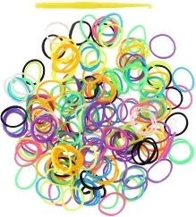 Set da 200 elastici colorati con gancetto per realizzare facilmente braccialetti, ciondoli e come accessorio di moda per i capelli. Confezione pratica 8,5 × 13 cm, adatta ai bambini a partire da 3 anni.