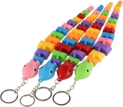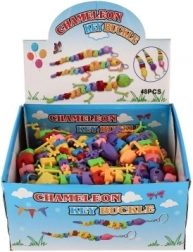 Si aggancia facilmente alle chiavi o allo zaino grazie all'anello metallico. Disponibile in un vivace mix di colori e forme (lucertola/camaleonte/serpente).