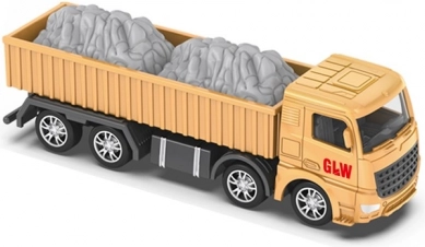 Robusto camion ribaltabile con lungo vano di carico aperto e imitazione di inerti, perfetto per il gioco in cantiere. Cabina dettagliata, più assi e ruote lucide aumentano realismo e divertimento.