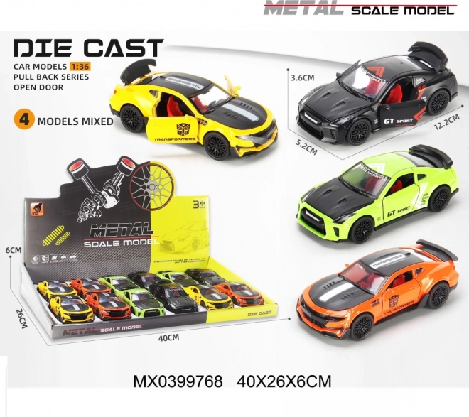 Scopri un modello realistico di auto sportiva in metallo in scala 1:36. Grazie alla struttura robusta e alle porte apribili, la macchinina appare autentica e si impugna alla perfezione. La funzione pull back garantisce una corsa scattante: basta tirarla indietro e partire.