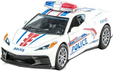Realistica macchinina della polizia in metallo in scala 1:32 che entusiasmerà piccoli e grandi fan dei veicoli d’intervento. Offre porte apribili, funzione pull back – tira indietro e vai e un attraente effetto luminoso. Disponibile in 2 design diversi.