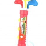 Divertente e sicuro set da golf per bambini in una pratica valigetta, ideale per un primo approccio al golf a casa e in giardino. Contiene tutto il necessario per il gioco e favorisce coordinazione, concentrazione e motricità fine, così i piccoli golfisti si godranno ore di divertimento giocando all’aperto e in casa.