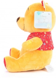 L'orsetto Winnie the Pooh è realizzato in morbido peluche giallo e indossa una maglietta rossa con un disegno decorativo, che lo rende un compagno ideale per le coccole.