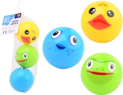 Le palline morbide Happy World offrono un gioco sicuro e divertente per i più piccoli. A forma di testoline di animaletti – ranocchia, pesciolino e paperella – invitano a esplorare, schiacciare e farle rotolare, sostenendo in modo naturale un gioco ricco di fantasia.