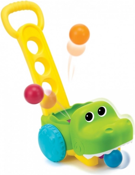 Spingendolo, il coccodrillo “inghiotte” le palline che poi saltano fuori: un divertimento che invoglia i bambini a fare nuovi passetti.