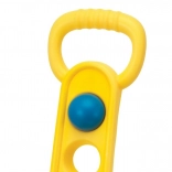 Manico giallo ergonomico con pulsante, ideale per le manine dei più piccoli e perfetto per facilitare la spinta e la stabilità.