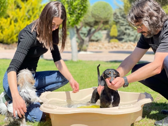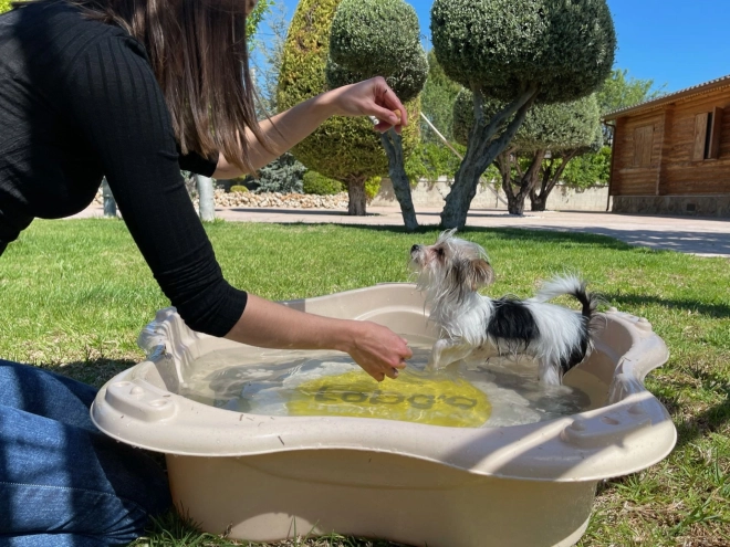 Il design studiato con bordi arrotondati e sicuri previene i morsi, mentre le pratiche scanalature di drenaggio impediscono la fuoriuscita dell’acqua. La piscina è impilabile per risparmiare spazio e, grazie alla maniglia, si trasporta comodamente ovunque: in cortile, sul terrazzo e anche in viaggio con gli animali.