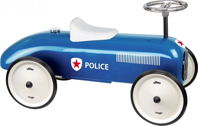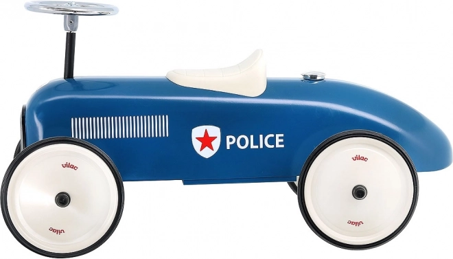 Divertiti con il detentore blu Vilac nello stile di un'auto della polizia. Questo detentore è completamente in metallo, garantendo alta resistenza e stabilità. Grazie alle ruote in gomma, ha un movimento molto silenzioso anche su superfici dure. È dotato di volante che assicura una guida facile.